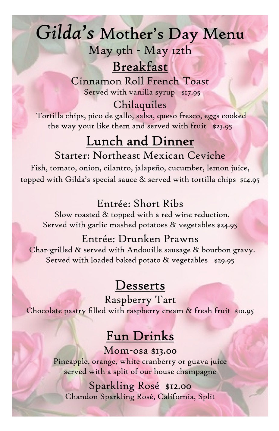 Join us on Mother's Day and treat your mom to a delicious meal!